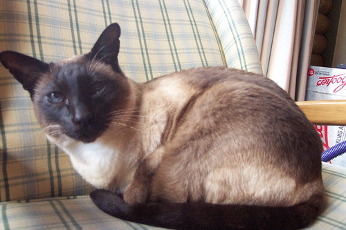 I had a Siamese cat named Coco from about 1989 until 1995. We got him when he was just a kitten about six weeks old. Coco was spayed and declawed. He was always trying to run out the door. He wanted to be outside. He was home alone all the time while I was at work. I had him flown down from Vermont to Florida when I moved. I finally decided to give him up for adoption. He was a nice cat and he liked to snuggle but I did not think he was happy being inside the apartment all the time alone.